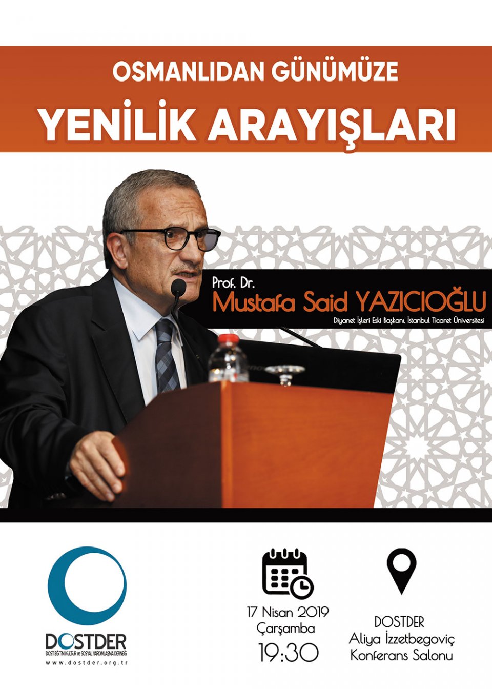 akşamı 19.30’da DOSTDER Aliya İzzetbegoviç Konferans Salonu’nda halka açık olarak