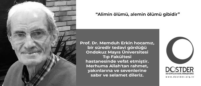Prof. Dr. Memduh Erkin hocamız, bir süredir tedavi gördüğü Ondokuz Mayıs Üniversitesi Tıp Fakültesi hastanesinde vefat etmiştir. Merhuma Allah'tan rahmet, yakınlarına ve sevenlerine sabır ve selamet dileriz.