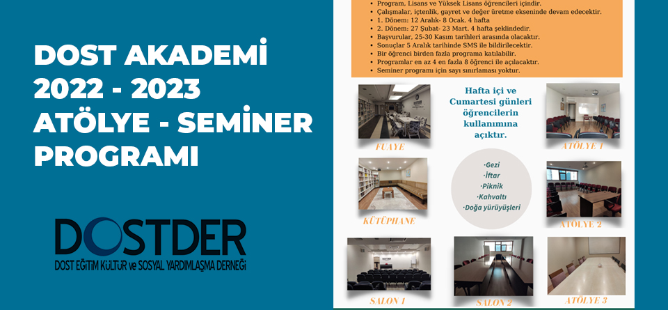DOST AKADEMİ 2022 - 2023 ATÖLYE SEMİNER PROGAMI