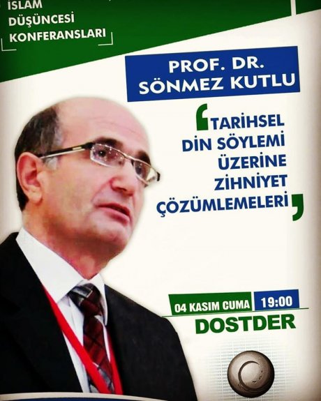 Devamını oku →Prof. Dr. Sönmez Kutlu "Tarihsel Din Söylemleri Üzerine Zihniyet Çözümlemeleri " Tarih: 04 Kasım Cuma 19.00 Yer: Dostder Aliya İzzetbegoviç Konfera...