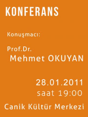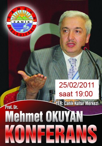 Devamını oku →DUYURU! Prof.Dr.Mehmet OKUYAN hocamızın 28.01.2011 tarihinde Canik Kültür Merkezinde saat 19.00′de konferansı vardır. Organizasyon: Samsun Canik Belediyesi...